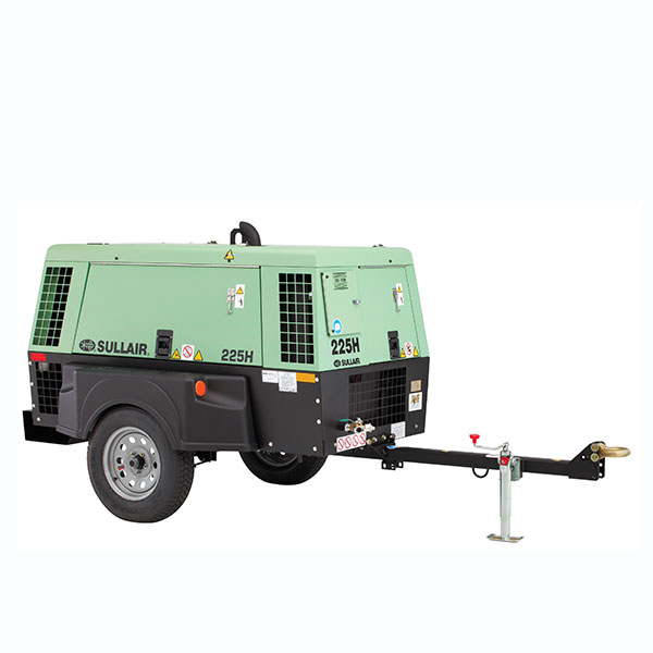 El compresor de aire portátil de tornillo rotativo Sullair 225H entrega 225 cfm a 150 psig o 6.4 m3 / min a 10 bar. La unidad está diseñada para brindar confiabilidad y total accesibilidad con puertas laterales grandes para un fácil mantenimiento. Accionado por un motor CAT que cumple con las normas de nivel 3. La opción de montaje es de 2 ruedas, de un solo eje. La caja está hecha de chapa metálica Galvanneal con recubrimiento en polvo duradero con tapas de material compuesto. Otras características incluyen la suspensión de ballesta, los engrasadores de cojinetes de rueda y un panel de instrumentos que se puede cerrar con llave. Los compresores cuentan con una válvula de entrada neumática y un control de capacidad de 0 a 100%