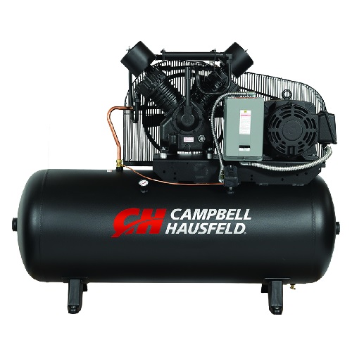 El compresor de aire Campbell Hausfeld de 120 galones, 15 hp horizontal, dos etapas (CE8003) es ideal para instalaciones de reparación de automóviles y puntos de venta de neumáticos. Este compresor de aire tiene un alto flujo de aire de 52.4 CFM @ 90 PSI para alimentar múltiples herramientas de aire de alta demanda. Su motor NEMA de calificación industrial funciona con energía eléctrica trifásica, impulsando una bomba de dos etapas de hierro fundido de larga vida útil, diseñada para ofrecer más de 15,000 horas de operación. El cabezal de la bomba y la placa de la válvula presentan un diseño avanzado con juntas tóricas de alta temperatura Viton (r) para un sellado superior a alta presión en comparación con las juntas de papel. Para una operación suave y de baja vibración, el cigüeñal está fabricado de hierro dúctil y está equilibrado de manera óptima.
