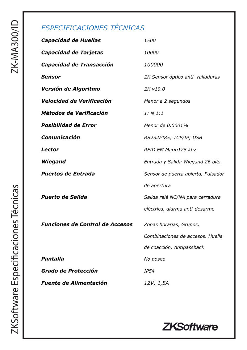 DESCARGAR FICHA TECNICA DE ZKTECO MA300