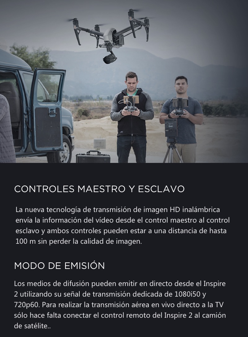 La Zenmuse X5S tiene un mejorado sensor M4/3 que hace fotos de 20.8 MP y graba vídeo en Apple ProRes en 5.2K En comparación con las cámaras con estabilizador de DJI anteriores, las X5S tiene un mejor ratio señal/ruido y un rango dinámico de hasta 12.8 pasos. Con el control remoto Cendence y un monitor ultrabrillante CrytalSky, el Pack Profesional del Inspire 2 establece un nuevo estándar en imagen aérea, abriendo nuevas posibilidades creativas.