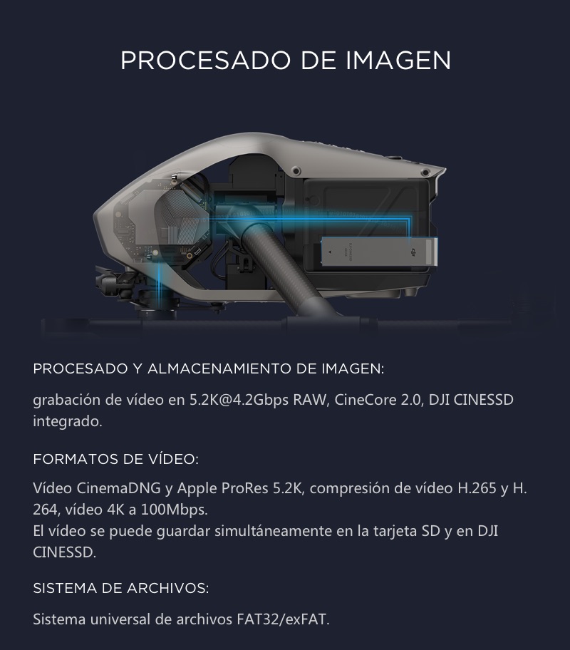 Para satisfacer las demandas de los cineastas profesionales más exigentes, la Zenmuse X7 utiliza un sensor de imagen S35 y ofrece CinemaDNG RAW a 6K con hasta 14 pasos de rango dinámico. La X7 inaugura además la DL-Mount, la primera montura integrada para objetivos aéreos del mundo, que permite cambiar entre los cuatro objetivos fijos disponibles con rapidez y sencillez. Al incluir cinco CINESSD de 480 GB, ocho Baterías de Vuelo Inteligente para un tiempo de vuelo prolongado y la potente combinación formada por el Cendence y el CrystalSky, el Pack Cinema Premium del Inspire 2 es todo lo que necesitas para hacer cine aéreo de la más alta calidad.