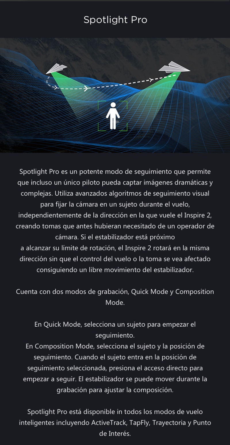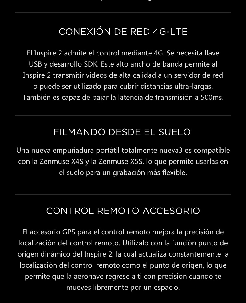 | RANGO DE PRECISIÓN DE VUELO ESTACIONARIO | Vertical: ±0.1 m (con posicionamiento visual) ±0.5 m (con posicionamiento por GPS) Horizontal: ±0.3 m (con posicionamiento visual) ±1.5 m (con posicionamiento por GPS) |