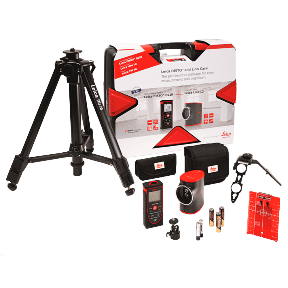 La D210 Leica DISTO™ y Pro Pack de L2 es el kit perfecto para la unidad de acabado interior en su vida. Incluye la D210, la L2, el trípode TRI70, y un maletín rígido para mantener todo organizado.