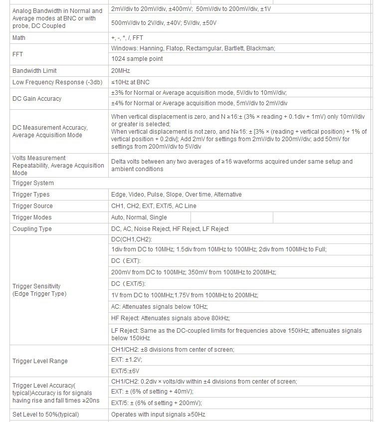 • Osciloscopio: ancho de banda de 200/100/70 MHz, frecuencia de muestreo de 1GSa / s. Generador de forma de onda arbitraria de 25 MHz, resolución de 12 bits, DDS de 200MHz, pantalla LCD en color de 7 pulgadas y 64K, resolución 800x480.