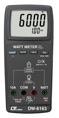 De operación directa tiene una medición: WATT ( AC ) : 6000W x 1W. ACV : 600V x 0.1 V . ACA : 10 A x 10 m A . PF : 1.00 x 0.01, con una potencia real y amplia gama de 0 W a 6000 Watt, además de su medición real RMS de ACV / ACA que puedes observar en su LCD grande y pantalla dual, que es fácil de leer por luz trasera en pantalla.