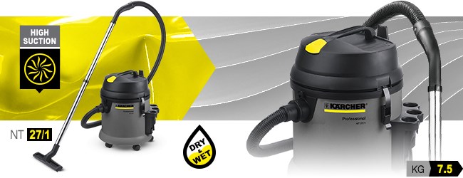 La NT 27/1 es una limpiadora húmedo/seco compacta, altamente maniobrable y fácil de usar para aplicaciones comerciales. Su potente ventilador proporciona un enorme poder de succión. La unidad está equipada con un filtro de cartucho. Un sistema de flotador mecánico corta la succión tan pronto como el recipiente llega a su capacidad máxima para evitar desbordamiento. Este sistema asegura un cambio rápido y sencillo. Cinco ruedas giratorias garantizan una excelente maniobrabilidad y estabilidad. La parte superior de la tapa del ventilador cuenta con una superficie de bandeja plana práctica para residuos. La carcasa entera está hecha de plástico resistente al impacto. La NT 27/1 cuenta con accesorios y un gancho para un cable de alimentación almacenado prolijamente. El asa de transporte ergonómica le da a la unidad un bajo peso y hace que sea conveniente para el transporte. La NT 27/1 tiene un tope integral que protege a la máquina de daños.