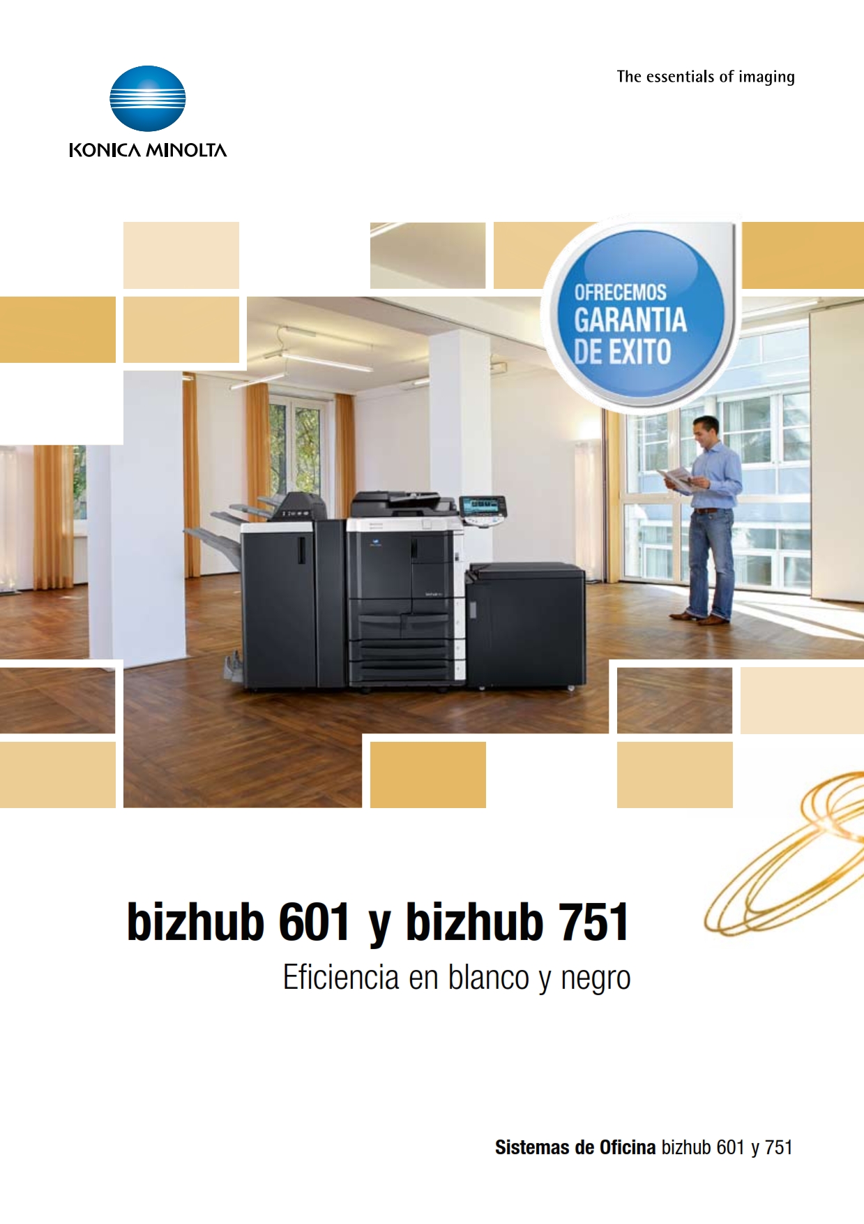 Konica Minolta bizhub 601 La Konica Minolta bizhub 601 es una copiadora estándar y escáner. Mediante la adición de las funciones de fax e impresión, la bizhub 601 se convierte en la solución perfecta para oficinas multifuncional de gran volumen. Los proyectos son entregados rápidamente a velocidades de hasta 60 páginas por minuto. El ciclo de trabajo mensual de 300.000 página te mantendrá al día con las demandas de oficinas de varias personas.