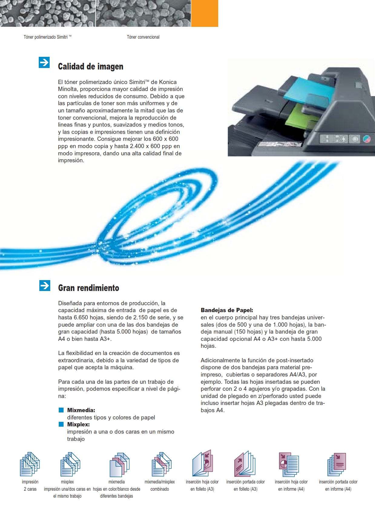 robusto ciclo de trabajo mensual de 750.000 páginas le da una potencia de producción que puede contar en. Con el escaneo rápido, flexible y múltiples opciones de acabado , podrás agilizar