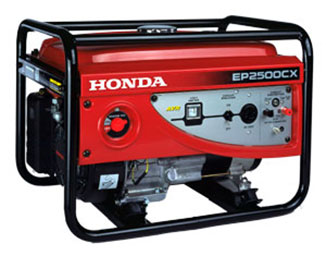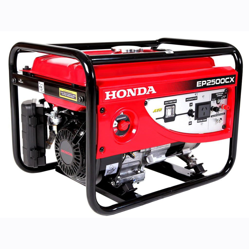 Grupo electrógeno HONDA EP2500CX, Monofásico, 220 V. 50 HZ., En potencia continua de 2.0 KVA. Y potencia máxima de 2.2 KVA., Estanque de larga duracion 25 Lts. circuito de protección térmico AC (evita daños por sobrecarga) Alarma de aceite (ayuda a prevenir el agarrotamiento del motor por falta de aceite) Salida DC 12 Volt 8 Amp (Para cargar Bateria).