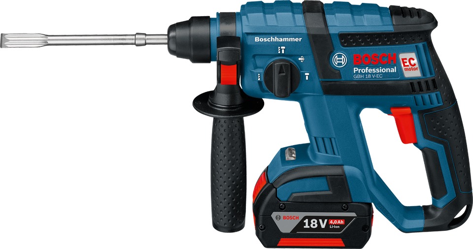 El GBH 18V-EC Professional es el martillo perforador a batería con la mejor relación potencia-peso de la gama SDS-plus de 18 V de Bosch. Posee una perfecta relación potencia-peso, alcanza una energía de impacto de 1,7 J y pesa solo 2,6 kg. Su diseño ligero y compacto permite trabajar en altura, mientras que sus robustos componentes y el motor sin escobillas lo hacen muy duradero.