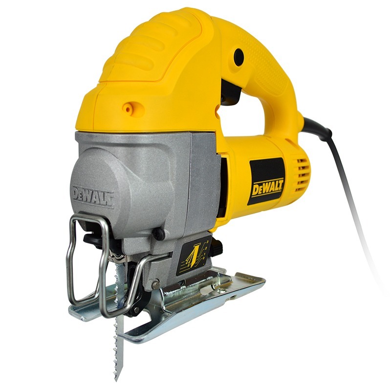 A primera vista la caladora DW317K posee un gran diseño que la vuelve robusta y resistente pero sin exagerar en el peso total del equipo (3.5 Kilos), esta sierra viene acompañada de un motor con una potencia nominal de 560 W y 5,5 A, esto permite que la sierra pueda trabajar con maderas duras o blandas sin ningún tipo de problema.