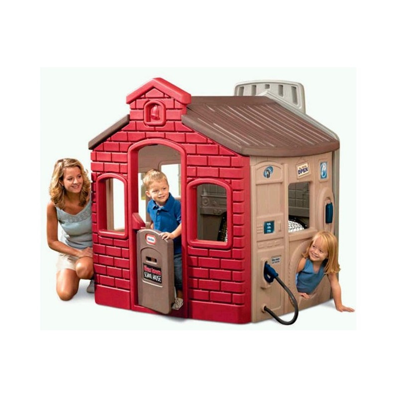 Gran casita con estación de grifo,cajero automatico y mercadito labrado en las paredes.con aro de basquet y arco de futbol en la pared posterior.