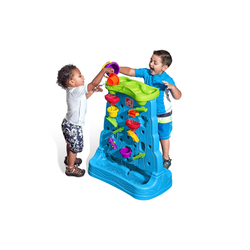 La pared de agua de dos lados permite juegos infantiles múltiples.