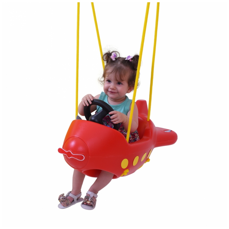 Con este columpio novedoso de Crecer Jugando podras darle mucha alegria a tu engreido,viene forma de avion rojo,tu pequeño imaginara que esta volando