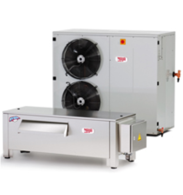 Fabricadora de hielo en escamas, preparada para su conexión, unidad condensadora MAJA incluida (refrigerada por aire), para temperaturas ambientes estandard hasta aproximadamente +32°C. Diseñada para solucionar las instalaciones con unidad productora de hielo y unidad condensadora separadas.