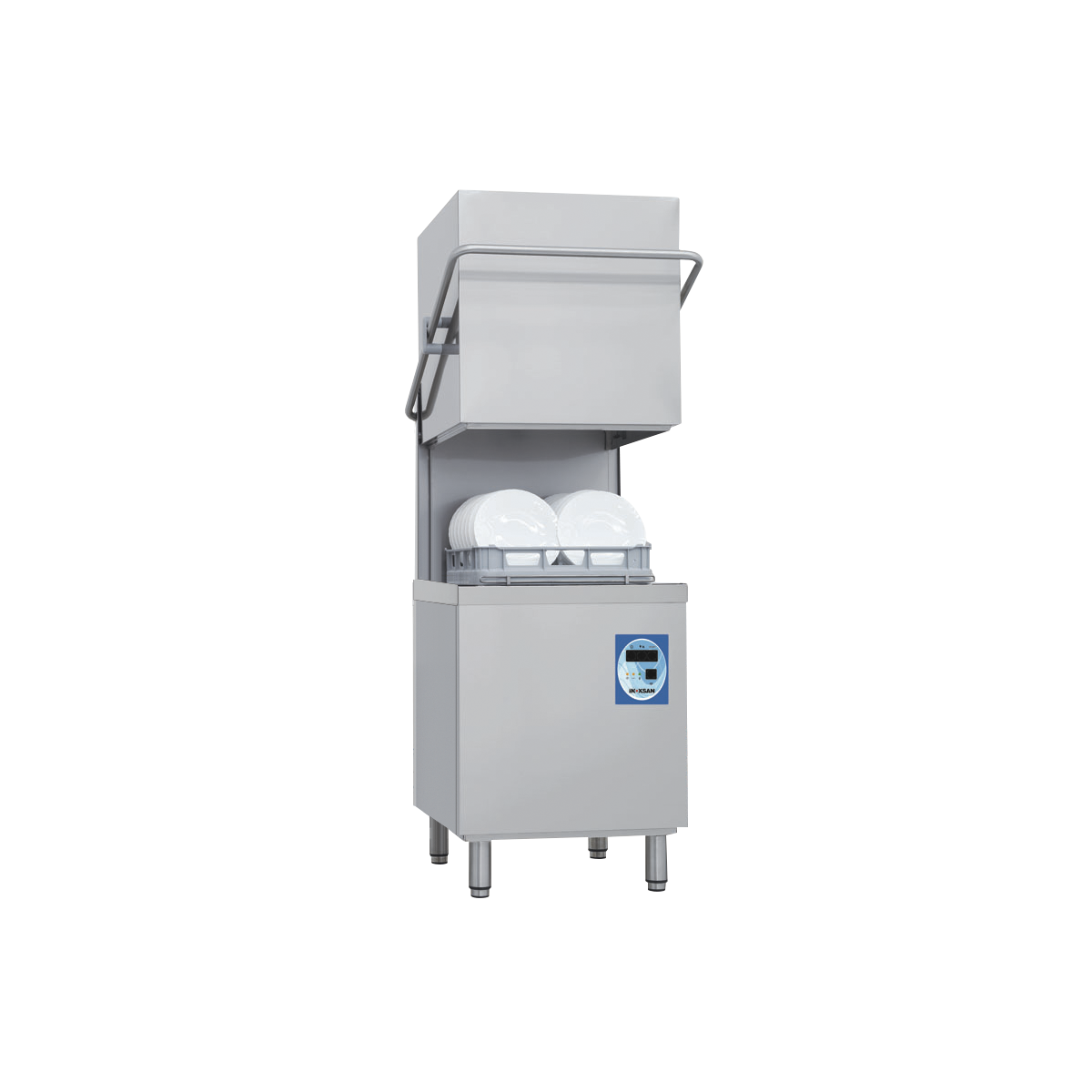 Fabricado completamente en láminas Cr-Ni. Automático, controla los diferentes pasos en el proceso de lavado por medio de timer electrónico. Sistema de corte automático de seguridad si la puerta es abierta. Soporta platos de hasta 40 cm de diámetro y vasos de una altura máxima de 38 cm. Equipada con 2 termostatos para control de temperatura en lavado y enjuague. Fácil de limpiar. Programa stándar de 120 segundos. Programa rápido de 90 segundos. Conexión de desague a piso.