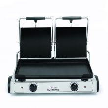Plancha snack eléctrica lisa doble de hierro fundido.