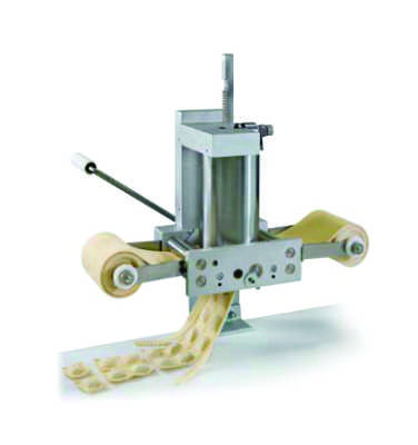 El RAVIOLATORE DA BANCO es una máquina manual que permite fabricar ravioles en tiras de 34 cm a 40 cm utilizando una hoja de 100 mm de ancho.