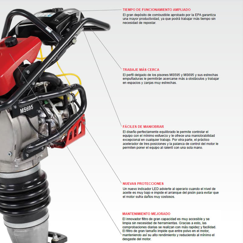 Además del rendimiento confiable, los pisones Chicago Pneumatic también le ahorran tiempo y dinero a través de un fácil mantenimiento y bajo consumo de combustible.