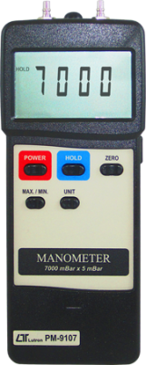 * Entrada dual y diferencial, 7000 mbar (7 bar) rango máximo. El sensor está incorporado dentro de la carcasa. Apagado automático para el ahorro de batería. Botón de ajuste a cero en el panel de control, fácil compensación a cero. Circuito microprocesador, la máxima exactitud posible. Pantalla grande con ajuste de contraste para una mejor visión en distintos ángulos. Graba las lecturas máximas y mínimas con rellamado. El asimiento de los datos funciona para almacenar el valor deseado en la demostración. Interfase serial 232 para PC.