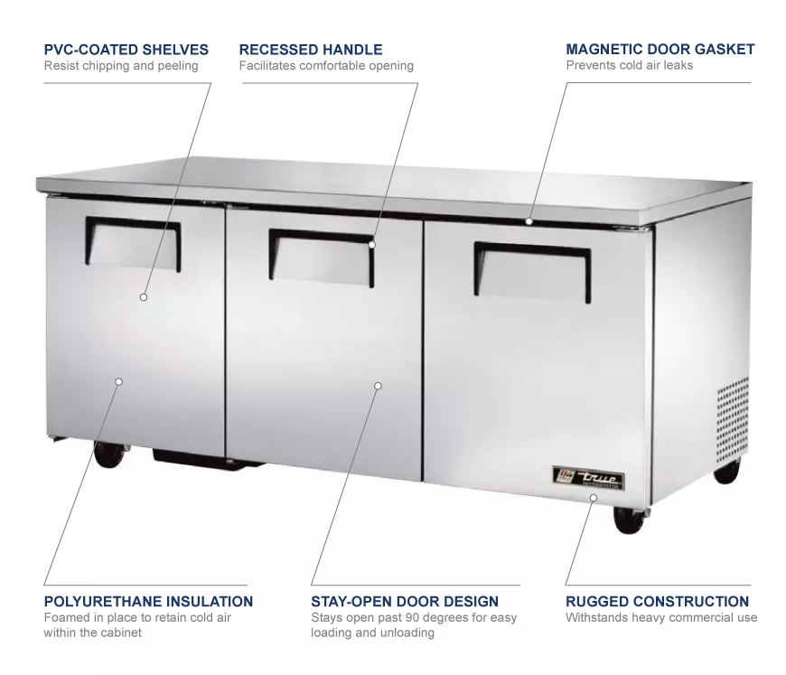 MESA REFRIGERADA UNDERCOUNTER 03 PUERTAS SOLIDAS TRUE - TUC-72