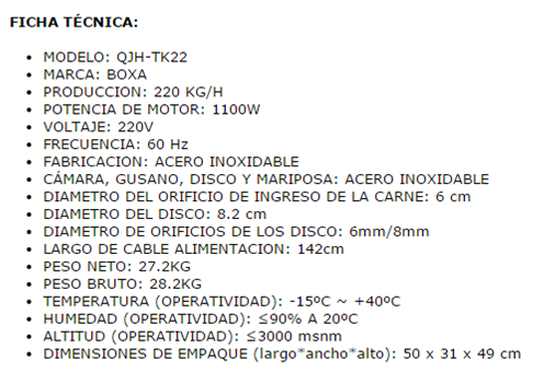 La mejor Oferta del Peru en moledora de carne 220 kg/hora boxa qjh-tk22 en Perú - , El mejor Equipo al mejor Precio del Peru , estamos Ubicados en Lima , Arequipa, Cusco, Huancayo, Piura, Trujillo, Cusco, Moquegua, Chiclayo, Ica, Pucallpa, Cajamarca, Huanuco , Puno y En todo el Peru