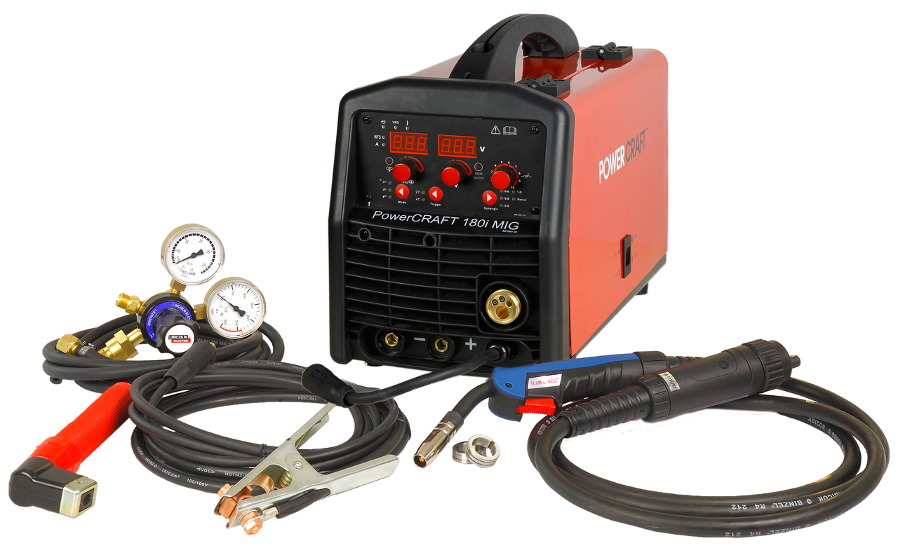 La nueva máquina POWERCRAFTå¨ 180i inverter 3 en 1 MIG, TIG, Stick está diseñada para aplicaciones de soldadura ligera a mediana. La opción ideal para contratistas, mantenimiento / reparación, bricolaje rural y serio. El POWERCRAFTå¨ 180i está diseñado para ser utilizado con MIG de acero suave con protección de gas, Innershieldå¨ sin gas FCAW, acero suave, bajo hidrógeno, electrodos de acero inoxidable y DC TIG (con antorcha TIG opcional). El POWERCRAFTå¨ 180i es fácil de usar. Simplemente seleccione la función sinérgica que permite sintonizar la salida con un solo botón o manual, lo que permite que los ajustes individuales de voltaje y velocidad de alimentación de alambre se marquen para el soldador más experimentado. Incluye muchas características que normalmente se encuentran en los soldadores industriales más grandes, tales como; medidor digital de voltios / amperios, purga de gas, pulgada de cable frío, selección de polaridad externa, bloqueo de gatillo 2T / 4T,