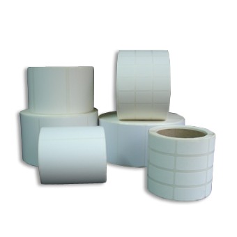 Etiquetas en rollo o resmas para impresión en máquinas de termotransferencia o termica directa.