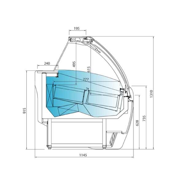 Vitrina Aries VAR 15 H, con medidas 156,2 x 114,5 x 131 cm y capacidad para 16 cubetas de helado de 5 litros.